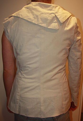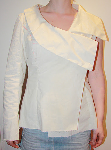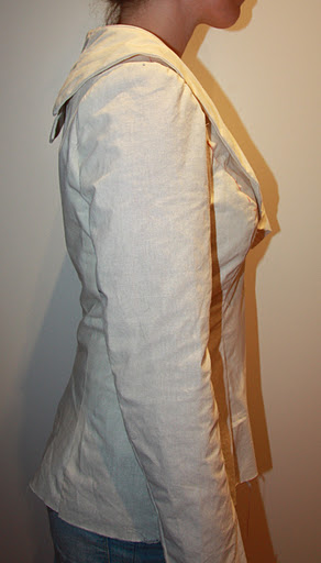 Sleeves are always a bit of a conundrum. I cut one sleeve from the pattern out of calico and attached it, but just wasn’t happy with the result. My fabulous sewing teacher suggesting tracing the sleeve pattern from her copy of Vogue 8333 and WOW! what a difference a superbly-drafted sleeve can make. Of course, V8333 is a Clare Schaeffer jacket pattern – the detailed and couture instructions in this make it worth it’s weight in gold. I went out and immediately bought the thing. WOW. So I’m sticking with V8333 sleeves on this jacket.