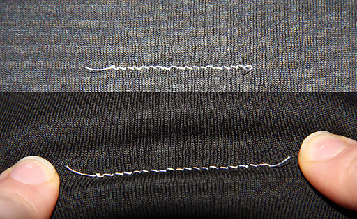 Choosing the Right Stitch: The usual straight stitch approach won’t work here. This stitch has no room for movement, and whats the point in sewing stretch if once you’ve put your garment together, it doesn’t give? You’re likely to end up with popped seams if you use straight stitch.
