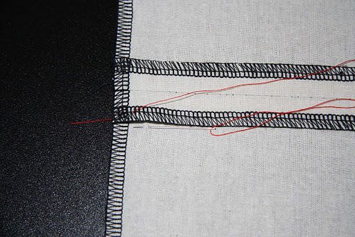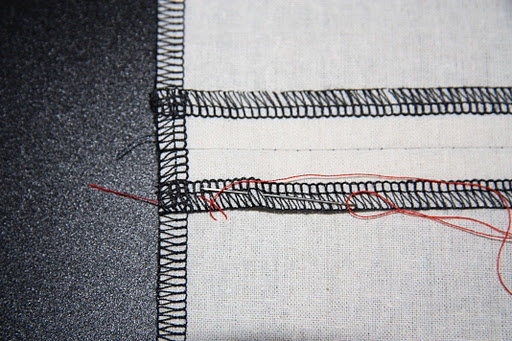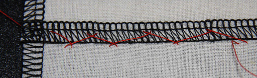 Pull taut, and keep alternating this stitch between the seam allowance and the shell fabric. You end up with what looks like two rows of X’s: