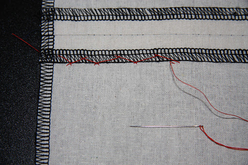 In yesterday’s post I talked about the use of a catch stitch to hold the edge of my seam allowance flat to my shell fabric. Here I’ll go through step by step how to do just that.