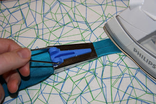 As you pull the tool away from you, iron the bias strip so the folds stay in place: