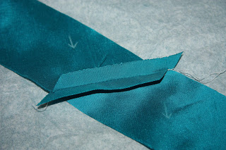 This dupion is a great example of also needing to match up the direction of the silk’s ‘slubs’ so that your strips will reflect light evenly and won’t be obvious to the eye that there’s a break in your binding.