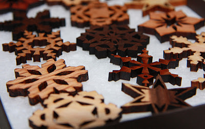 How gorgeous are the laser cut wooden snow flakes above? I’m trying to make a tradition of buying a special Christmas ornament each year, and these are this years find, from Etsy seller Timber Green Woods. Last year I bought some ‘baubles’ covered in lovely polka-dotted pheasant feathers, so unintentionally it seems I’m going for an earthy theme for my future Christmas Trees.