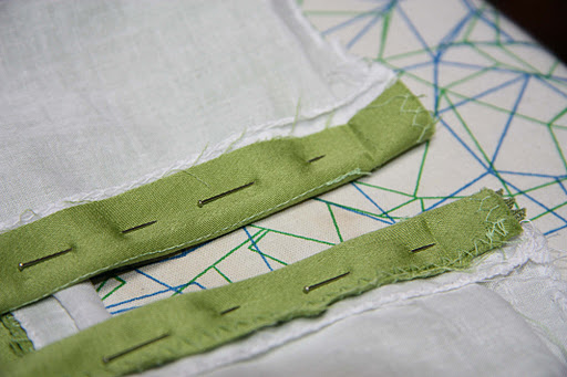 I take the pins from the right side out as I go, you can see I’ve still got one on the right side of the garment just near my finger.