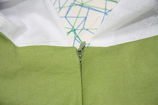 Following on from my previous post (101: Installing an invisible zip), we still need to finish off the seam at the top of the zip. This is done either with a facing, or a lining.