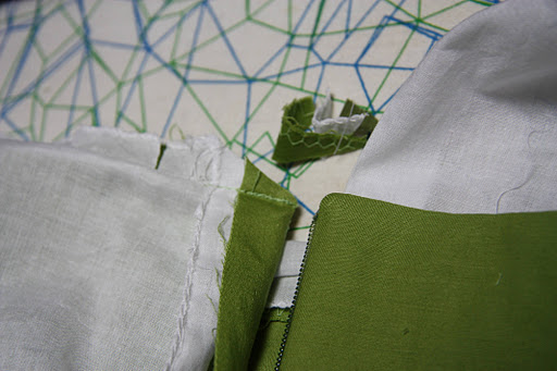 1. Before installing my invisible zip I had already attached my lining, stopping about 4cm away from each zip half. I do this so that I know the both the fabric and lining/facing are in alignment with each other: