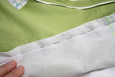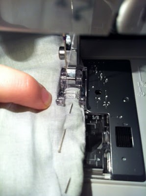 I take the pins from the right side out as I go, you can see I’ve still got one on the right side of the garment just near my finger.