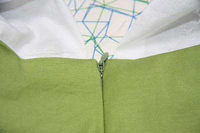 1. Before installing my invisible zip I had already attached my lining, stopping about 4cm away from each zip half. I do this so that I know the both the fabric and lining/facing are in alignment with each other: