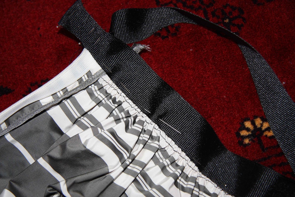 Then sew along to secure your skirt to the ribbon.