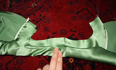 2. Here’s that ‘a-ha!!’ moment I was talking about. With the wrong sides of the fabric facing, roll up your garment towards your unfinished arm hole: