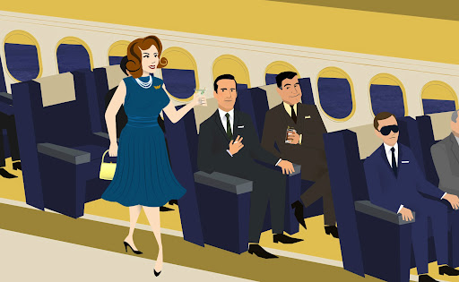 Matched with this me-made skirt and of course assuming a Joanie pose, I think the resultant effect would be Mad Men reminiscent… (and apropos to my soon-to-be jet-setting status) kinda like this: