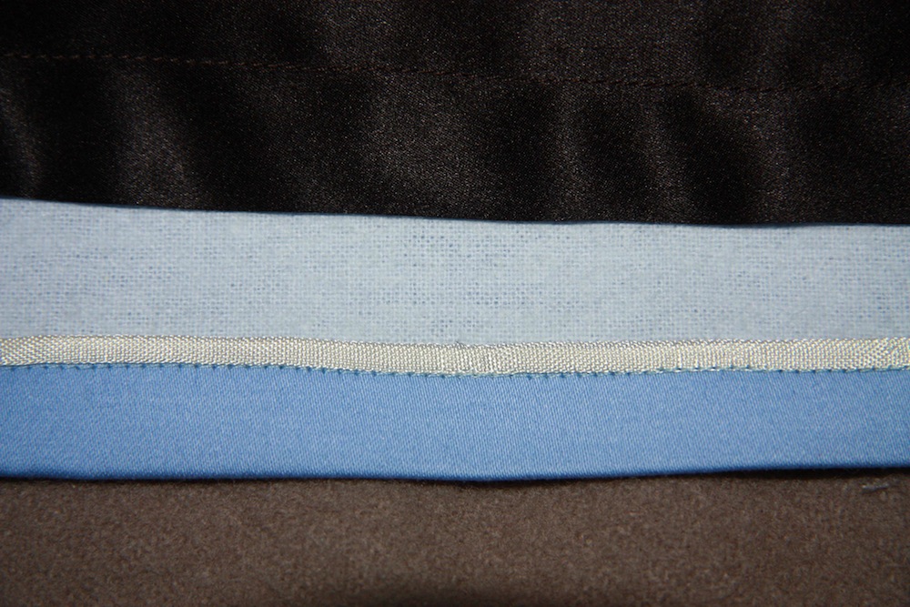 After using a thick silk satin fabric to line my Vogue Suit, I was hooked! I used the same fabric again in black (also from Clegs) which should also insulate quite nicely :) I used the mat side of the silk satin to create the piping by cutting bias strips (same way as you would for making bias tape) then using my regular zipper foot (it’s the only foot I have that lets you get the needle position right to the edge of the foot) to encase the cord in the bias strips.