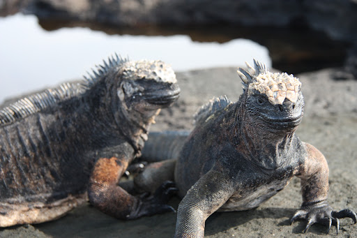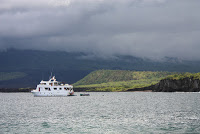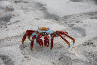 Galapagos Islands: some dragons, two blue footed boobies, a manta ray, a sally light-foot crab, a male frigate bird and the accomodation:
