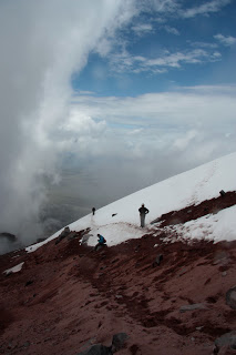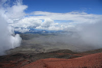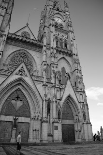 In and Around Quito: the Convent, inside the clock tower, at Mitad del Mundo (the centre of the earth – lattitude and longitude 0), the Cathedral, watching the Good Friday Procession in the old city, hiking up to the glacier on top of Cotopaxi Volcano, some pretty high altitude flowers, the view from up among the clouds on top of Cotopaxi Volcano (5000m asl):