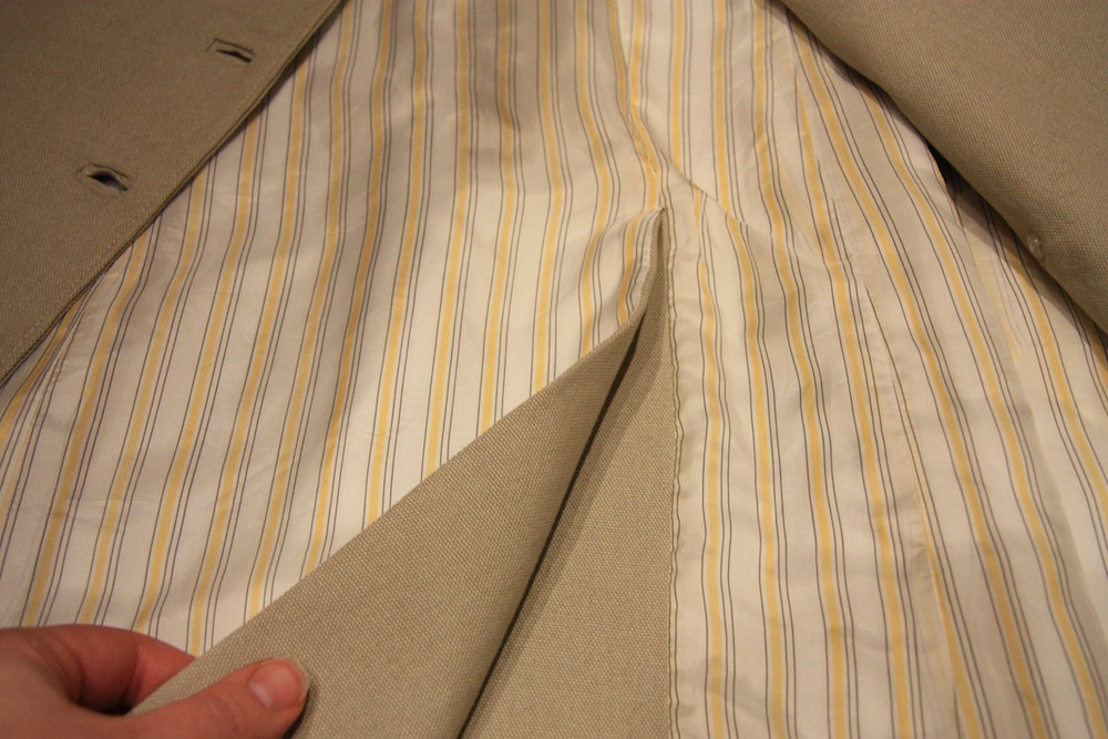 The main fabric is an oatmeal coloured canvas, the yellow detailing is from the leftover stretch cotton from my Caramel Slice Marfy and the lining is a striped viscose/acetate (Fendi Lining #8) – a Tessuti Trifecta! I bought the canvas yonks ago in the thought that I’d be making the iconic McCalls 5525 trench coat – for some reason I though I needed 6m of fabric for this (I must have done something stupid in the conversion from yards to meters…) I ended up using 3.1m for this coat. And to think I was worried I might not have enough. What a dill!!!! Good thing it was inexpensive, but still the wastage from my lapse in reasoning really ticks me off. I might have to make the 5525 for a friend to use it up…