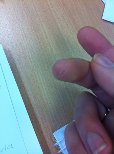 Having previously looked at thimbles and been suspicious of why one would ever need such a thing, I now understand them. My poor middle finger (and thumb to a lesser extent) has been bruised and battered with all the hand sewing. And this photo is of my finger more than a week after most of the damage (it would have been a bit too gruesome to show the fresh wounds).