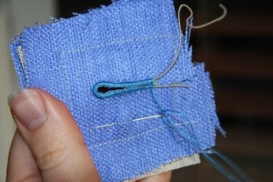 It’s certainly not something I’d feel comfortable parading in front of Claire Shaeffer, but it’s a starting point. I started on the bottom right and worked my way around clockwise – it’s pretty evident to me the second half is a lot nicer!! Half the trouble is knowing how far to ‘bite in’ with your stitches; unfortunately I’ve also managed to stretch the fabric out, presumably when pulling my stitches tight – which you can’t really see in the photo.