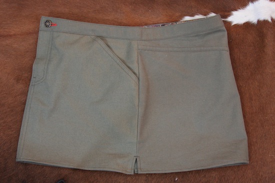 Because my deep-seated need to own and wear something in a bottom weight army green canvas fabric was stronger than the stab of fright I got when the upholstery topstitching thread I’ve become such a fan of chewed up yet another bobbin. I should have taken photos of the three occasions this occured… but I felt guilty for my poor feather weight Janome so they got removed asap.