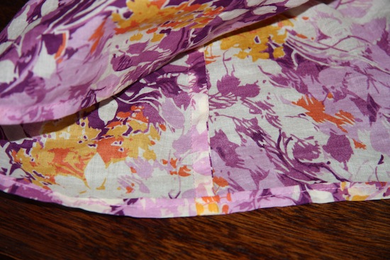 I finished the armscye with some self-fabric bias tape, but it ended up stretching and just generally looking a bit lame. So that got tucked under and sewn up: