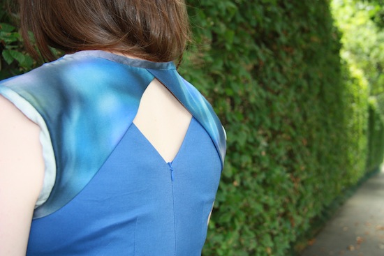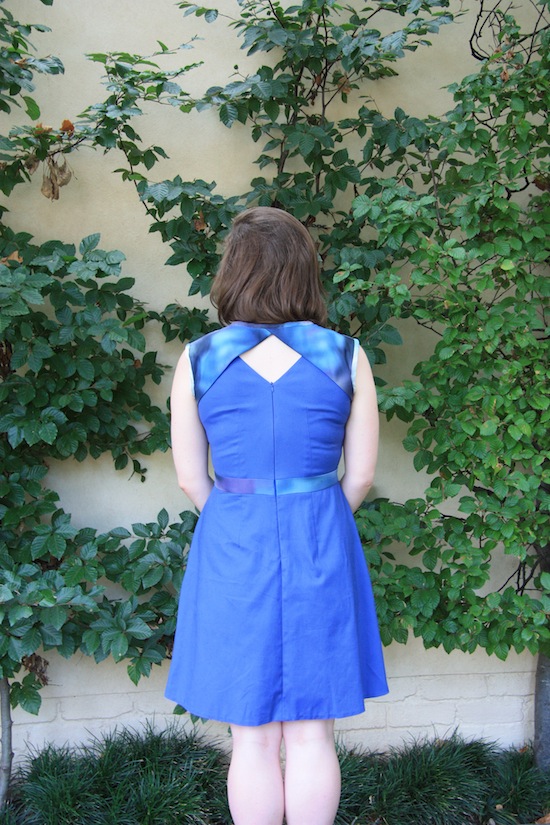 5. Lovely dress. The back is very funky indeed. The blue looks lovely at you. I love the contrasting fabrics – such a nice unique touch. I felt frustrated just ready about your list of frustrations – we've all been there so I feel your pain. Great end result though.