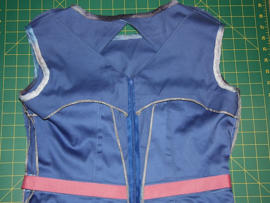 – I thought I was being smart when I decided to add facings to the back to clean up the zip finish. That totally backfired when I realised I had to take in the centre back seam.