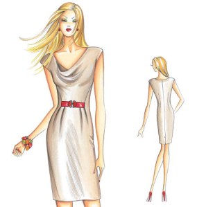 | F3067 – Refined tube-dress with draped collar, drop-shoulder sleeves and skirt featuring half belt and two darts |