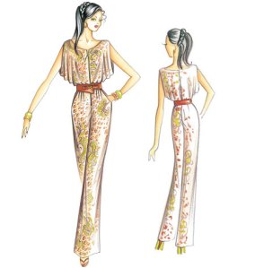 F3165 – Maybe it’s the cutouts at the neckline. Maybe it’s the recommendation to sew it up in Velvet. But this is funky. Does anyone know where I can buy a jewelled collar like that?