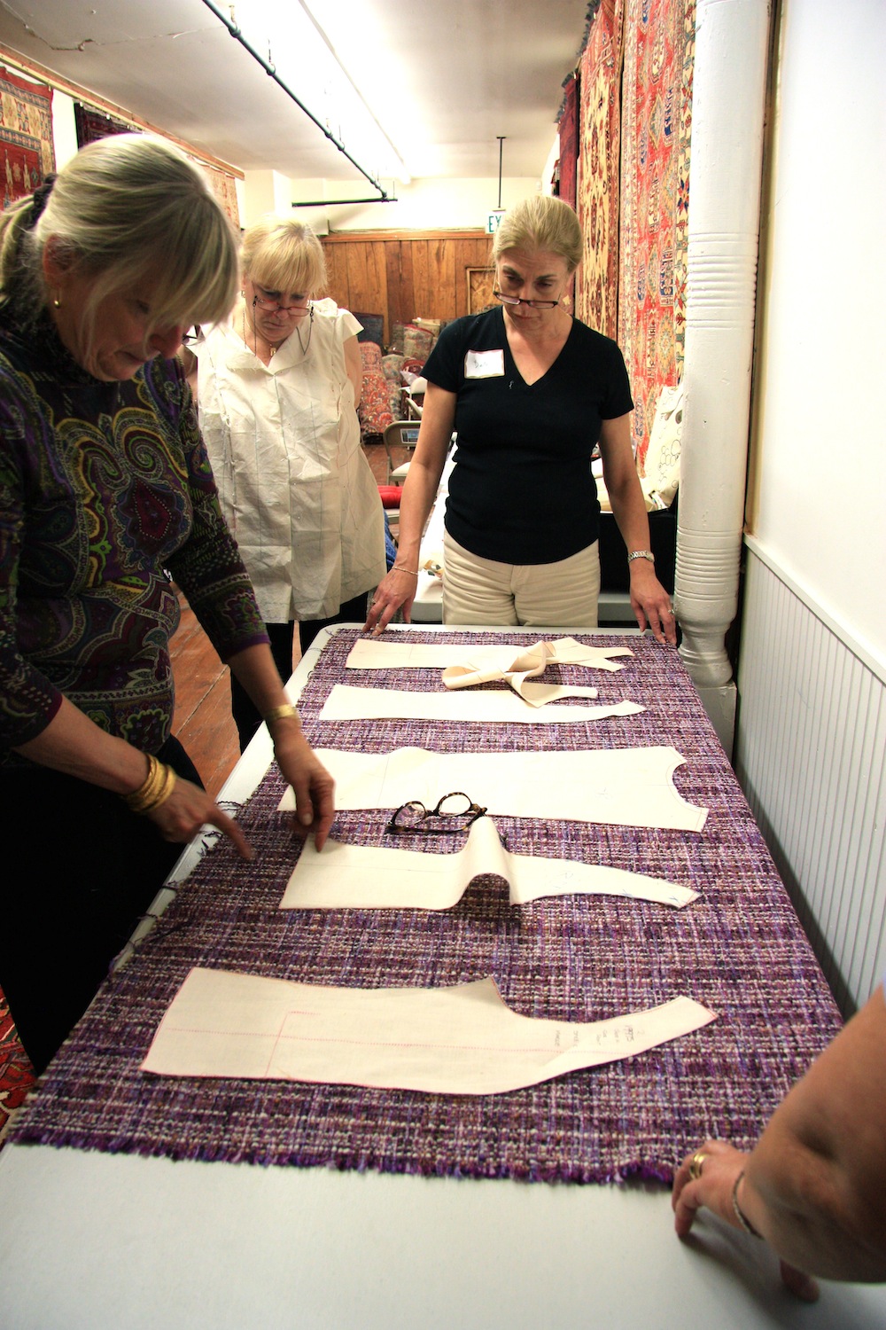 We start out with Susan showing us the French Jacket she made for her Threads magazine article (Oct/Nov 2005, issue #121), discussing the construction methods and the garment’s distinguishing features – the construction of this garment really is a subset of techniques in its own right.