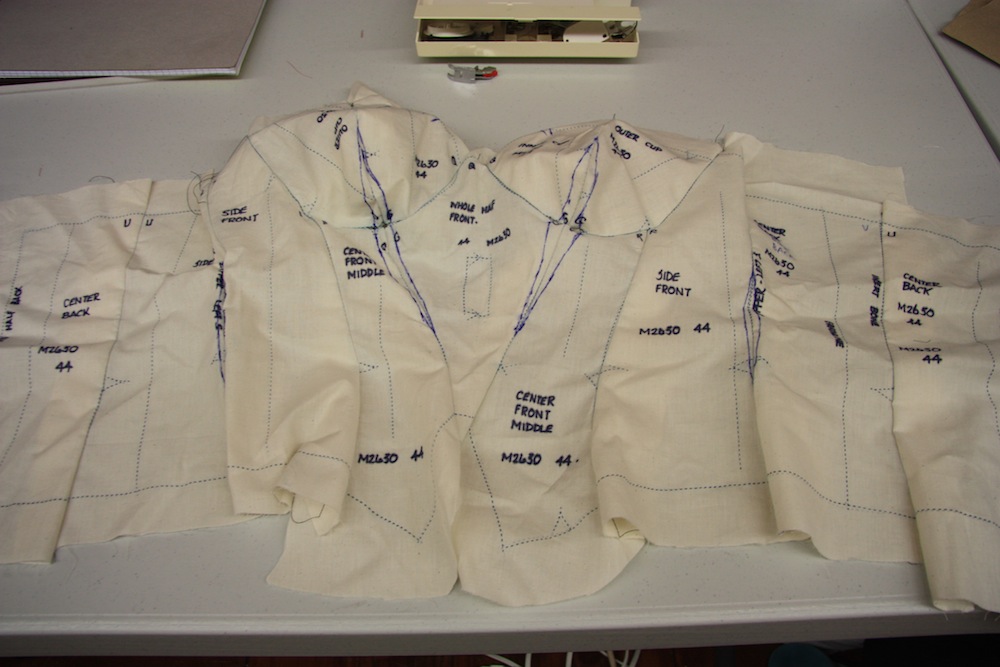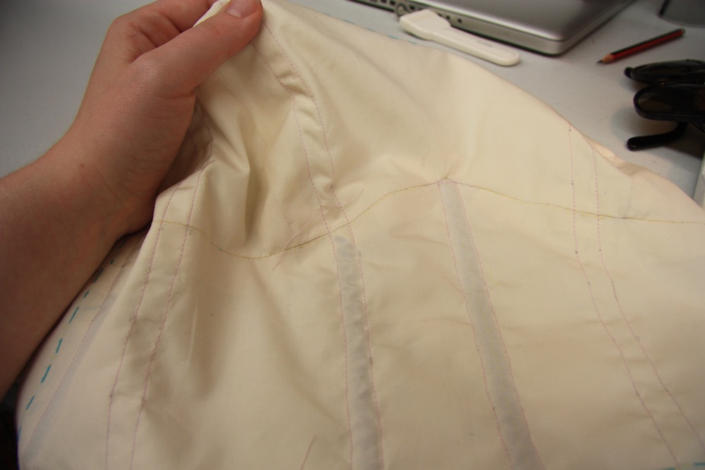 Meanwhile, Leisa next to me was also making this pattern to go as a foundation structure for her ballgown. I took a happy snap to document the location of her boning channels: