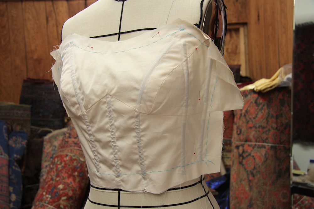 And then I pin the foundation into the bodice and try my hardest to get it so there are no wrinkles from the outside when being worn: