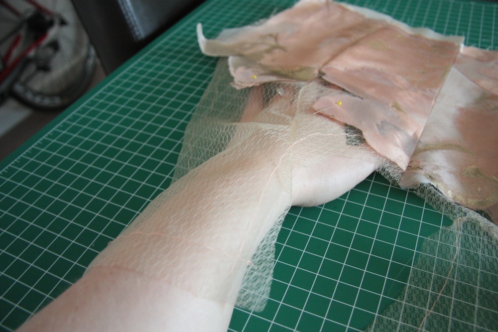 Once I’d secured the edges to the fabric and finished hand sewing it down, the netting was cut off.