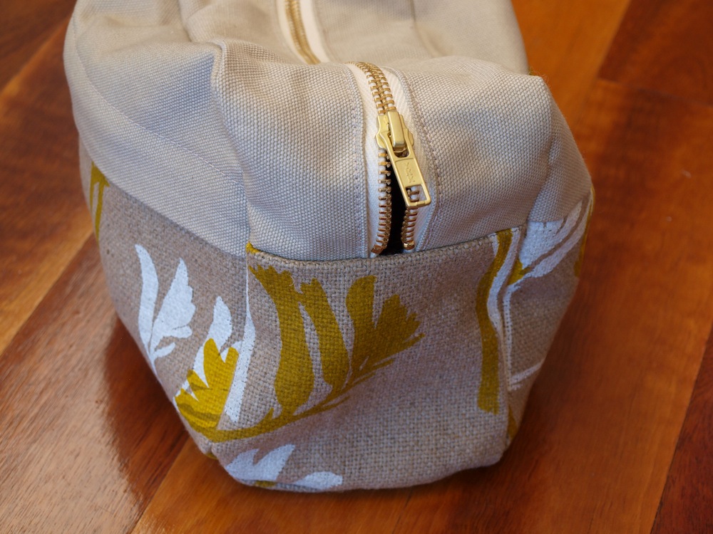 The other thing I might change were I to make this again would be to include a tab either end of the zip, which would be achieved by either elongating the bag or using a 12″ zip instead of a 13″ zip. I did this on a small (unblogged) toiletries bag I made last year and I like both the look and the extra strength/stability it lends to this area.