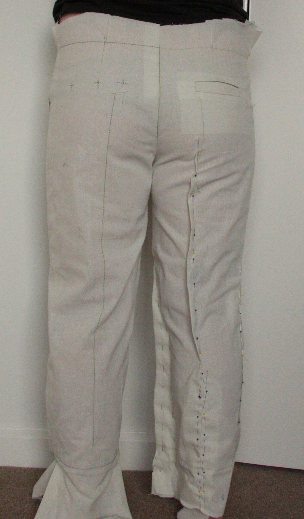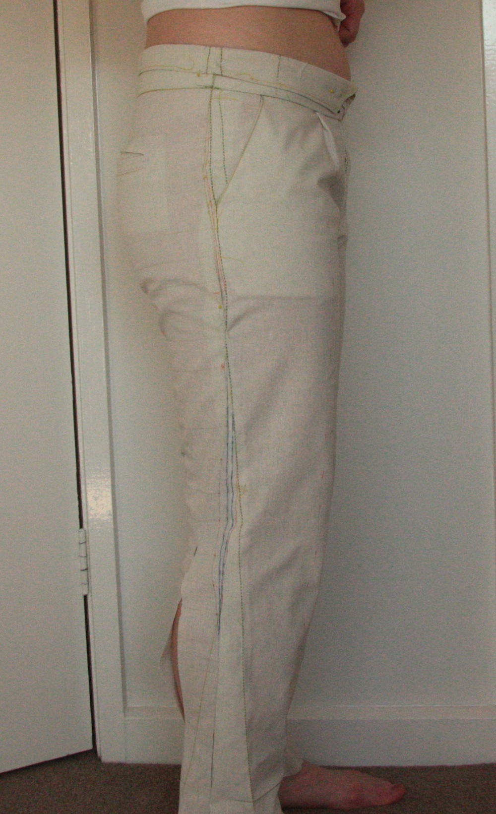 9. You have done the yeoman’s work and you are going to benefit from this with every pair of pants (and likely every garment you make) going forward. They look great. Muslin is a hideous fabric to see potential in. When you make them in a proper fabric with drape, you’re going to be very happy.