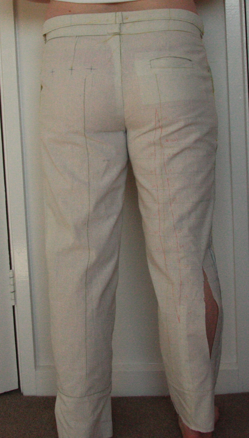 1. Hi Mem – that exercise was really more about learning the shape of my legs and how they related to the pattern. I won’t be using it at all – it did tell me how much of a knock-kneeded adjustment I need, and I think the results of that speak for themselves in my final muslin :) Now that I’ve got that, I’m going to go back and draft in features similar to that of the Jacques pattern (which I still do love the idea of) – slanted pockets, a small pleat, a fly front and a waistband. Thanks for your thoughts!