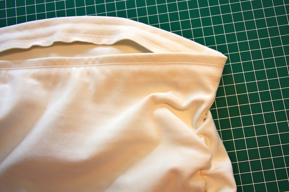 Frenched side seams and a miniature hem at the bottom – makes me feel slightly less lousy about the nasty finishing on the ponte version!