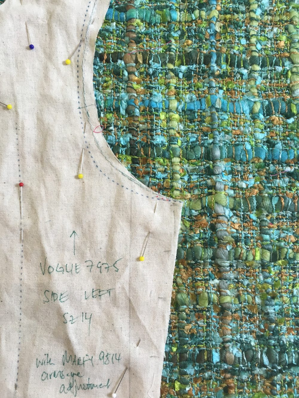 And it just so happens that I have enough of the Octopus’ Garden boucle to squeeze a jacket out of – I recall when I first started sewing that I’d always buy an extra meter of fabric over what the pattern called for, you know – just in case. I absolutely love this fabric so I’m really excited to be working with it again.