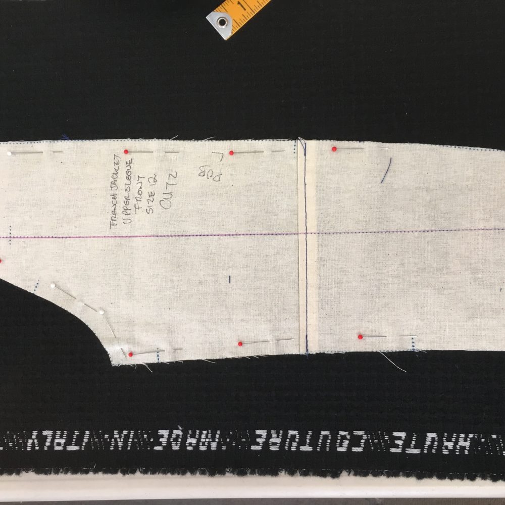 So I’m back for another week and another French Jacket! I recall this time last time I was already absolutely sewing fatigued, but this time around I’m incredibly invigorated to keep on sewing. I’m unable to attend the entire 7 days of the class due to a certain little person needing to be looked after, so I was grateful to be able to be fitted on Day 6 of the Couture Sewing School last week. I spent the last afternoon of that week’s class arranging my pattern pieces to make sure I could get the repeat in the right places.
