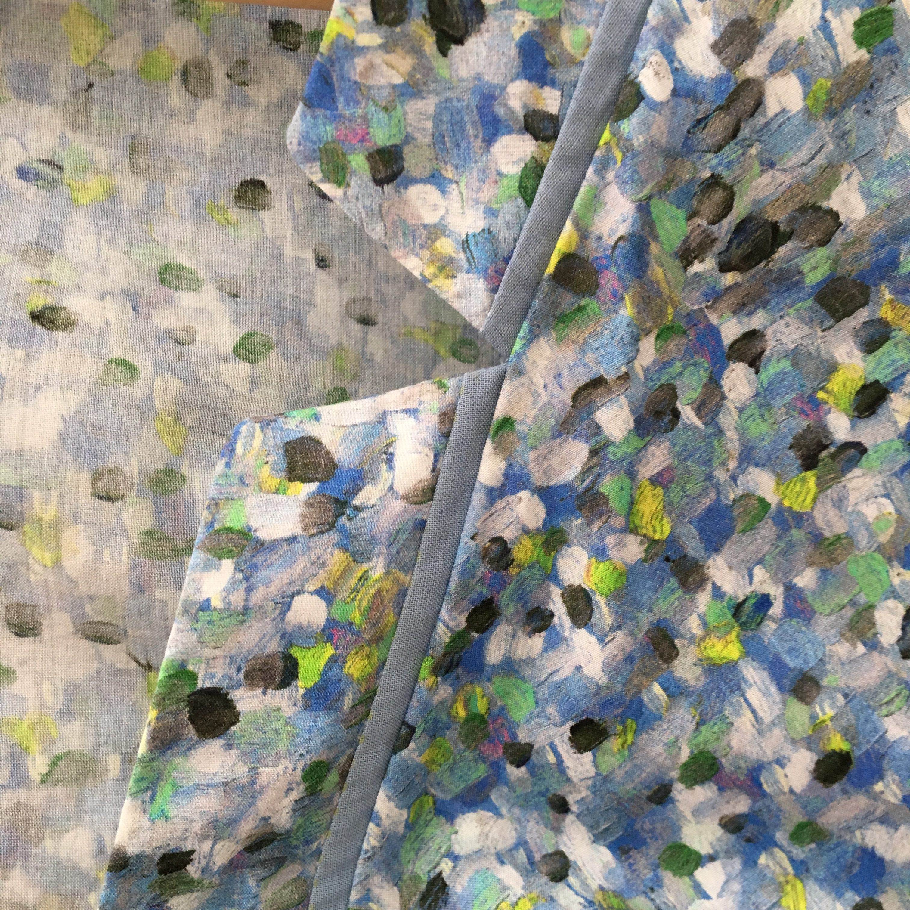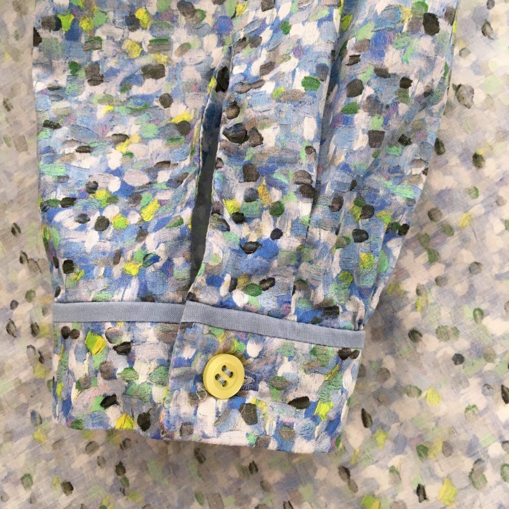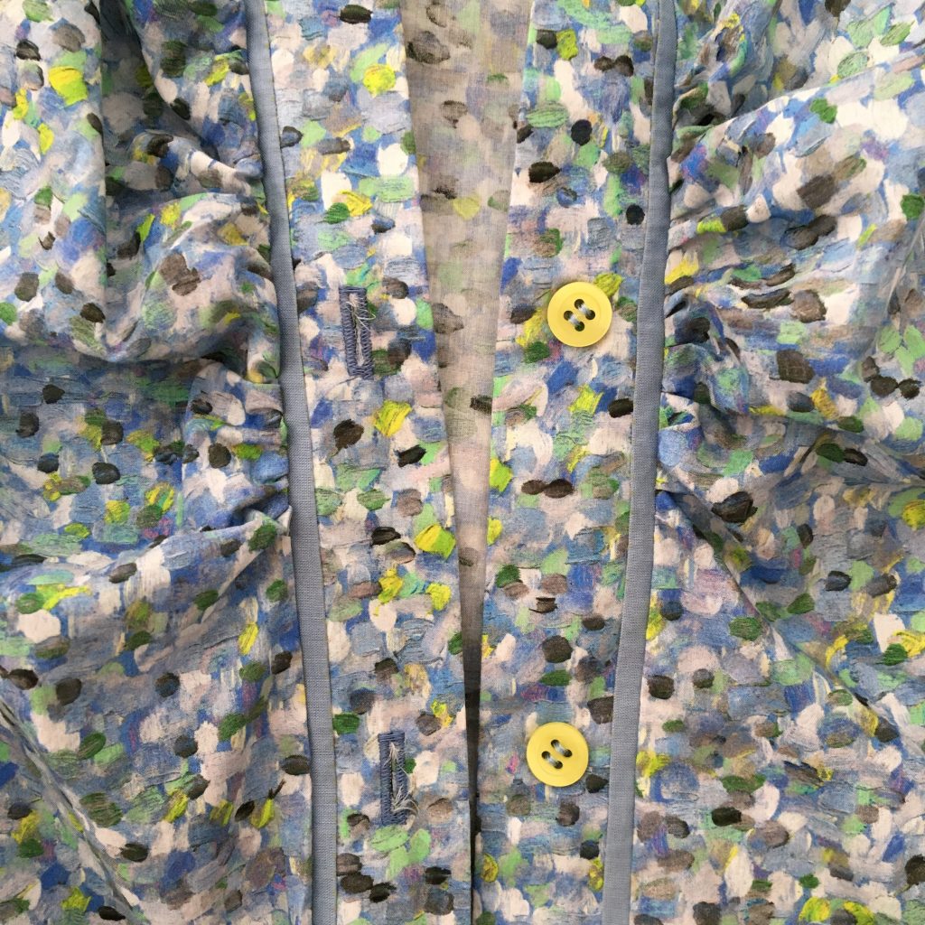 2. I love the buttons, they almost look part of the dabs of color. The stripes will really set off the unique composition of this pattern if you choose to do a second one! I’ve done lots of those sleeve facing things over the years, and I can’t think of what they call that one either!