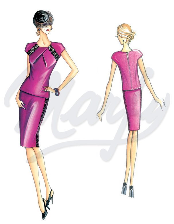 5205: “This sheath skirt has inset pockets. Suggested fabric: satin or crepe”. Another pattern that was on the fence for me – but did make it across into the purchase wishlist. I love the concept of the pleats at the front, but I think choice of fabric could make or break this.