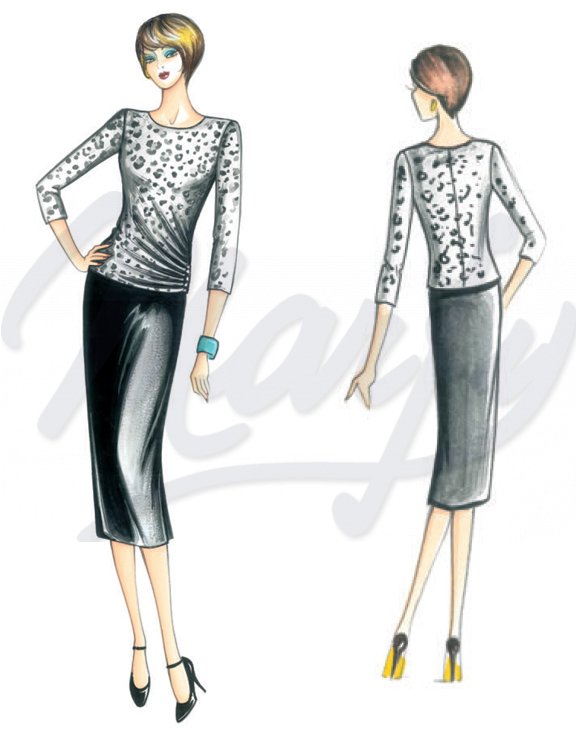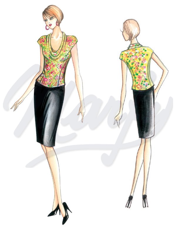 3999: “Blouse with either palm-length or cap sleeves. Suggested fabric: jersey”. The intent is to try sewing some more everyday knit tops from this one: