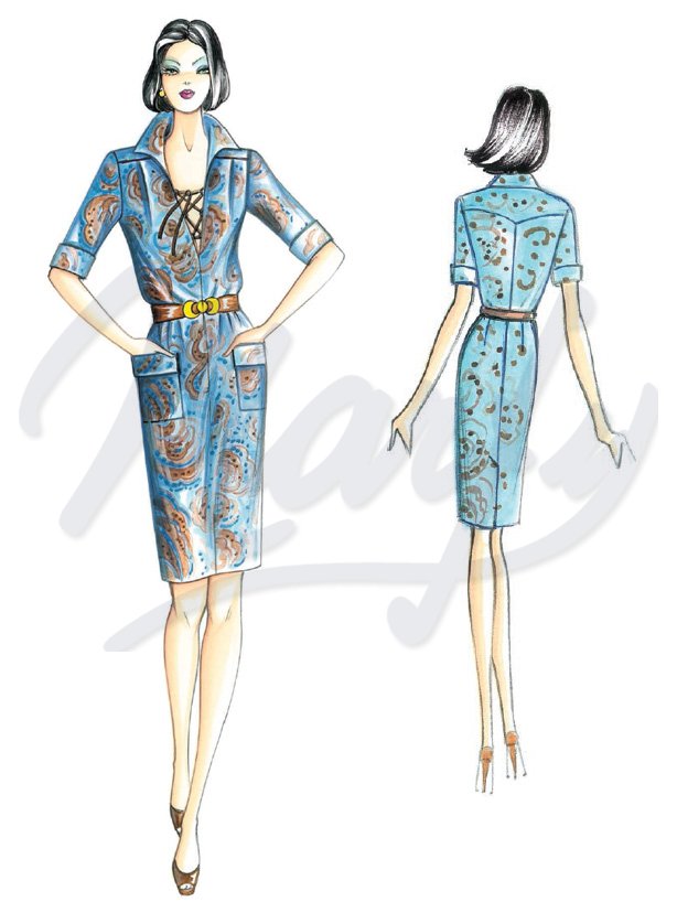 3893: “Printed silk shirt-dress with optional collar, square yoke at back, tie-fastening at neck, patch pockets, and sleeves with turn-up cuffs.” Looks like a great shirt dress pattern. I’m thinking it might be time to try sewing with Linen?