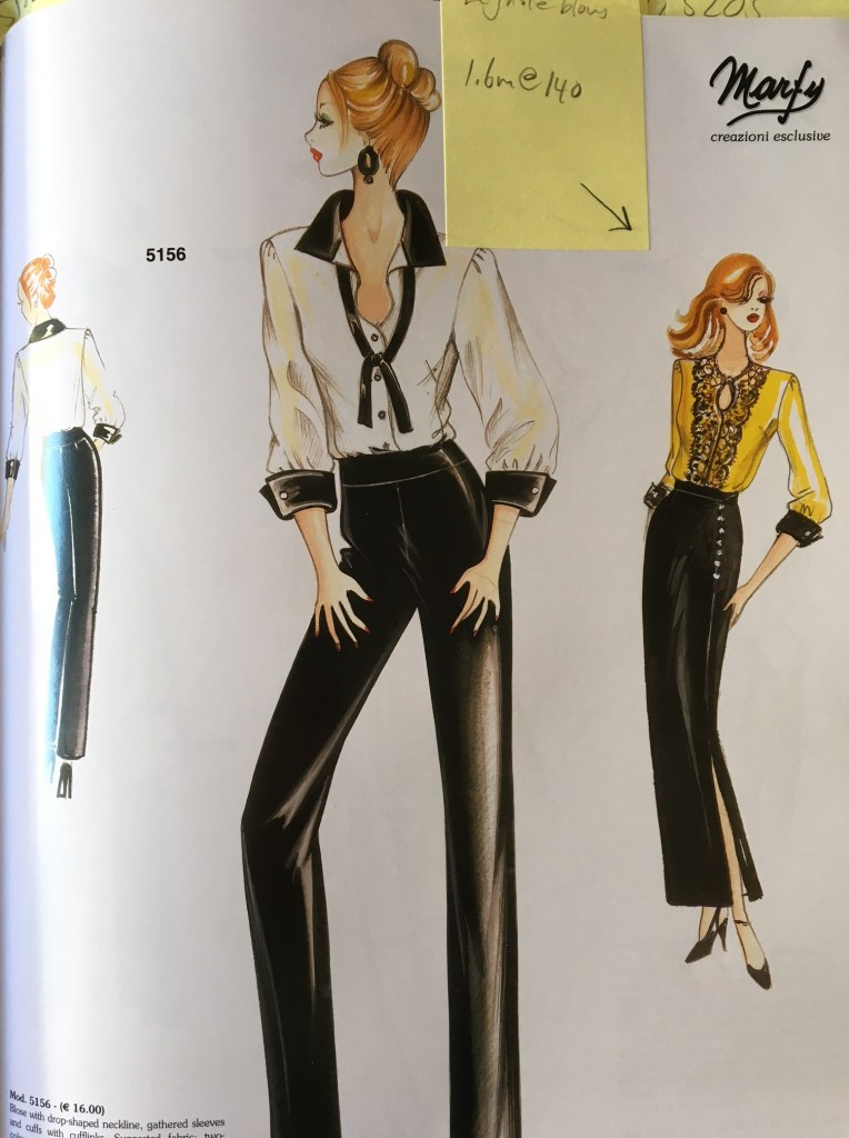 5159: “This refined semi-fitted blouse has an original origami-effect collar that frames the neckline. The sleeves are gathered at the cuffs”. There’s not much I don’t like about this one.