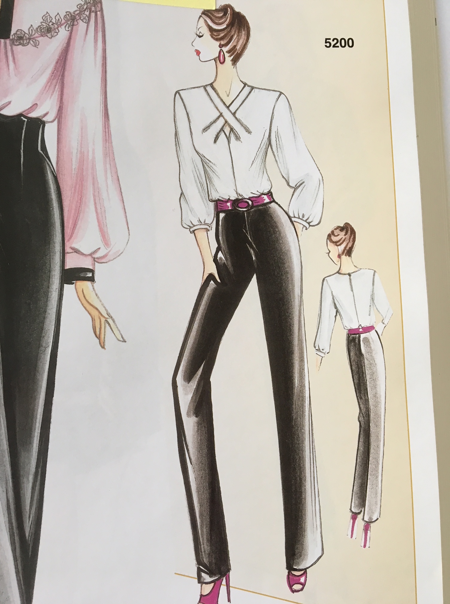 5285: “Trousers with raised waistband that forms a waistband in the back”. I recall when I got my first and second Marfy catalogues being surprised as how few pants patterns there was. But after sewing my own – I think I understand the reasons why. That it’s really easy to pick and choose your features and add them into any pattern once you’ve got one that works for you. I really like the waistband treatment.