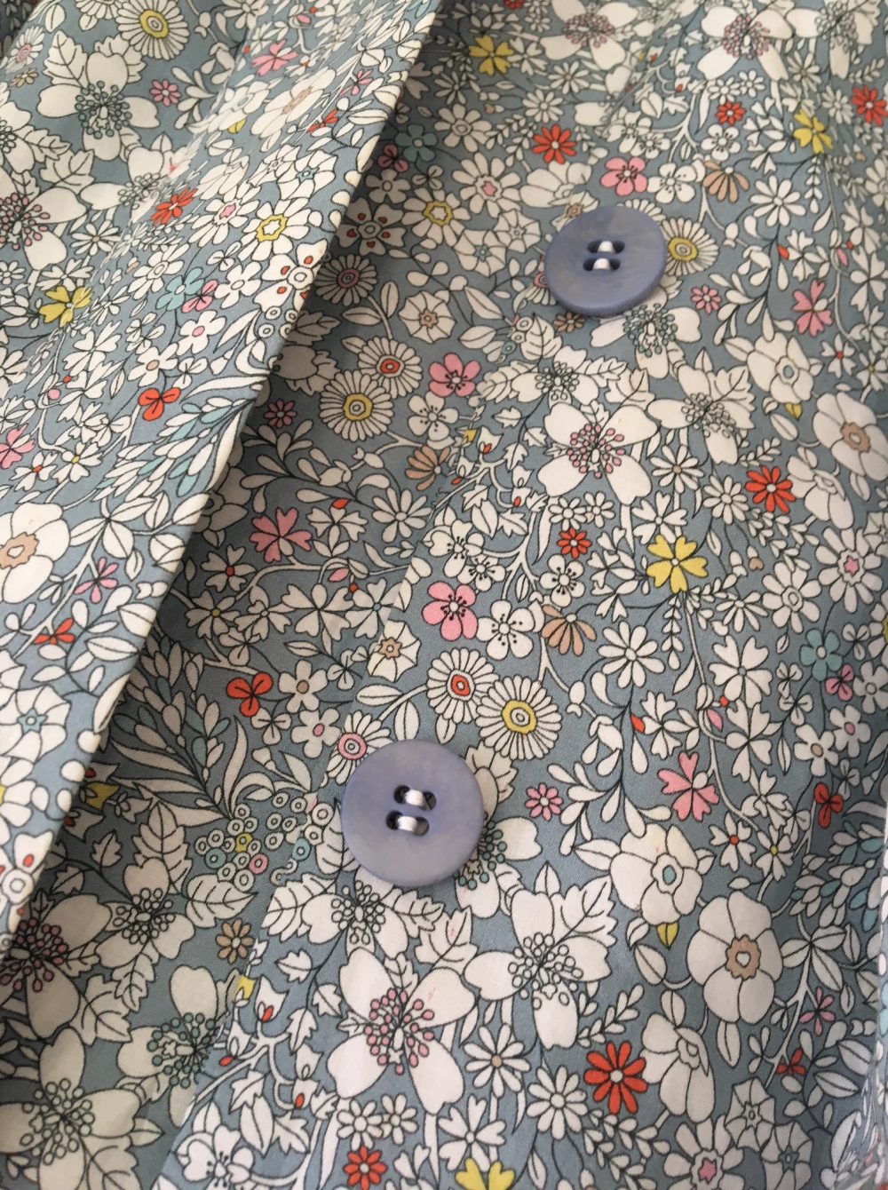 The buttons perfectly match the print’s background blue-grey, although every photo I took makes them look like a completely different shade!