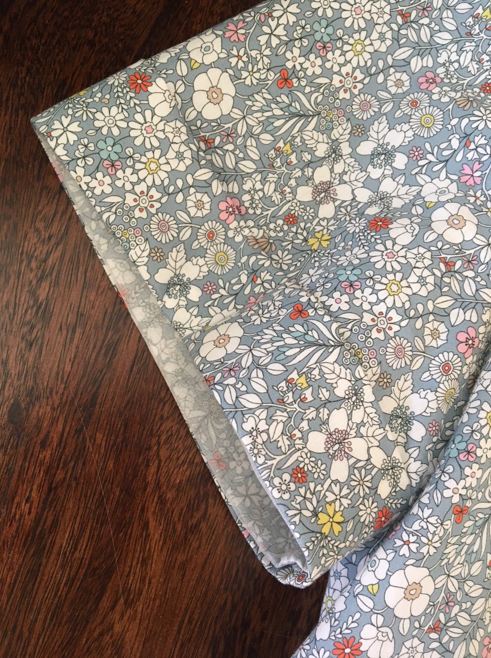 But just before cutting, nerves got the better of me, and I ditched the yellow, and bought a different Liberty – June’s Meadow, in the grey colourway. Which was frustrating because it meant having to wait for it to arrive in the post! I at least managed to start on a muslin for my next project…. This fabric is far more in the comfort zone, and highly unlikely to make me look washed out.