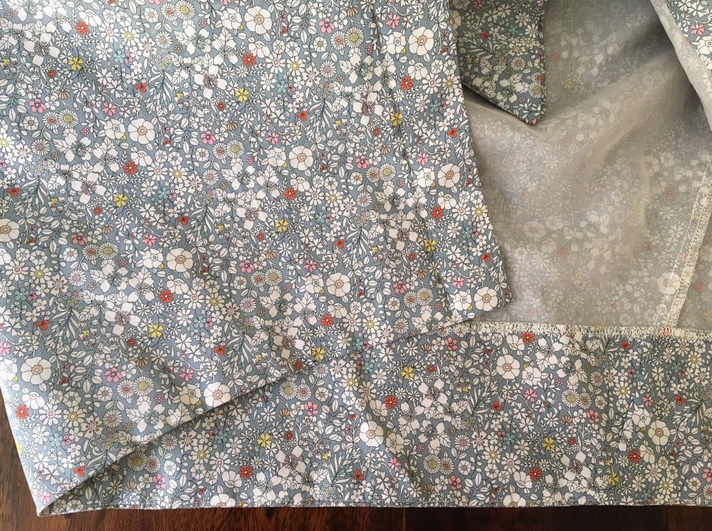 The tana lawn has been underlined with organza, because I think this is a pattern that really benefits from a fabric with body to really highlight the shaping – hence why I suppose the recommended fabrics are broadcloth and linen. Organza underlining obviously delivers that in spades.