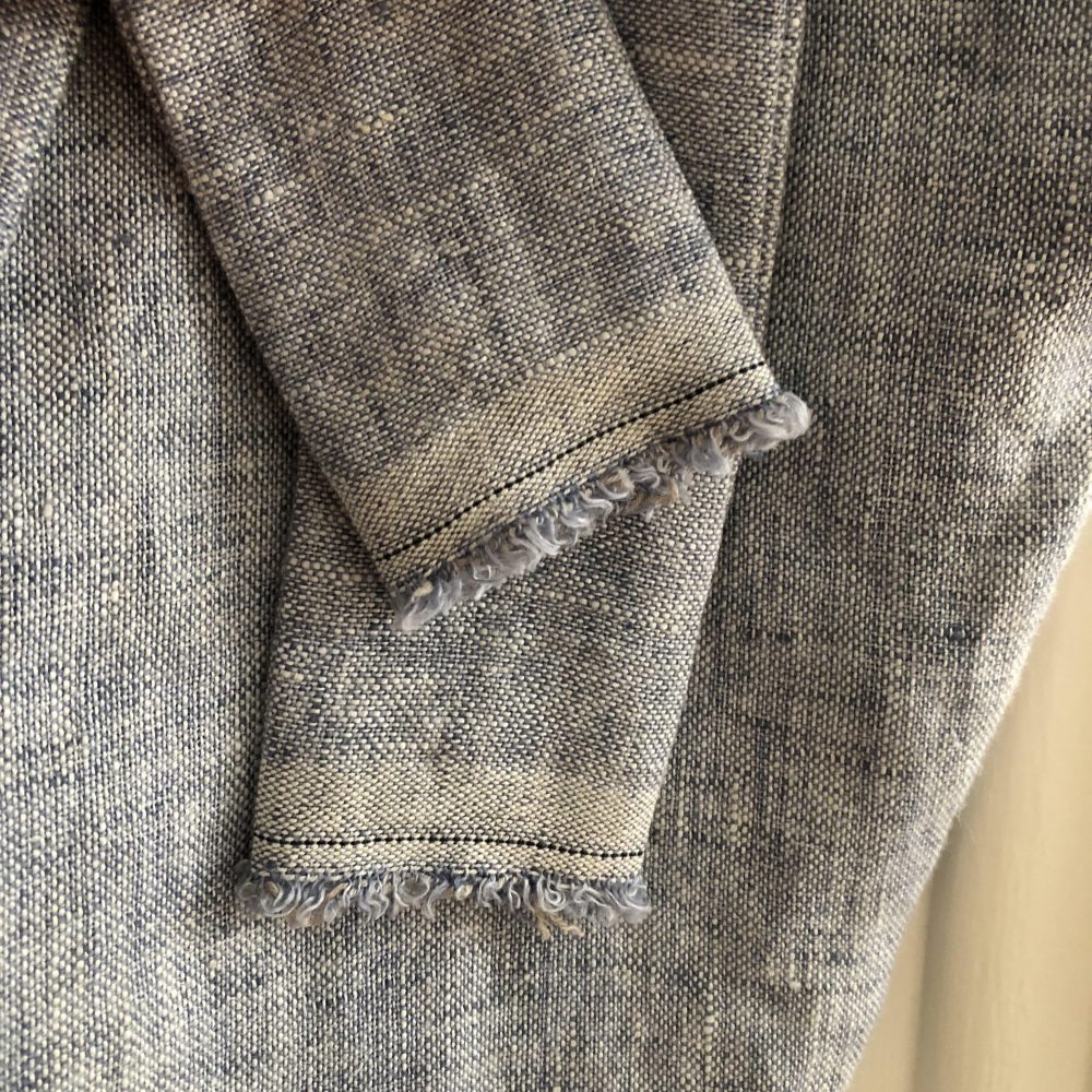 This linen is from the Cloth Shop. I was particularly taken with the chambray effect of the two coloured fibres that make it up, and as is always with Linen, I immediately find myself wanting to incorporate the selvedge somehow. Is that just me?