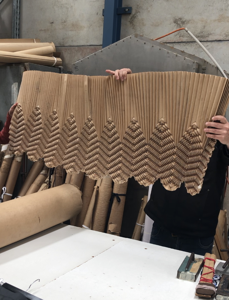 But as with hand-pleating, the fabric is still sandwiched in between two layers of paper for machine pleating – protecting it from direct contact with the machinery.
