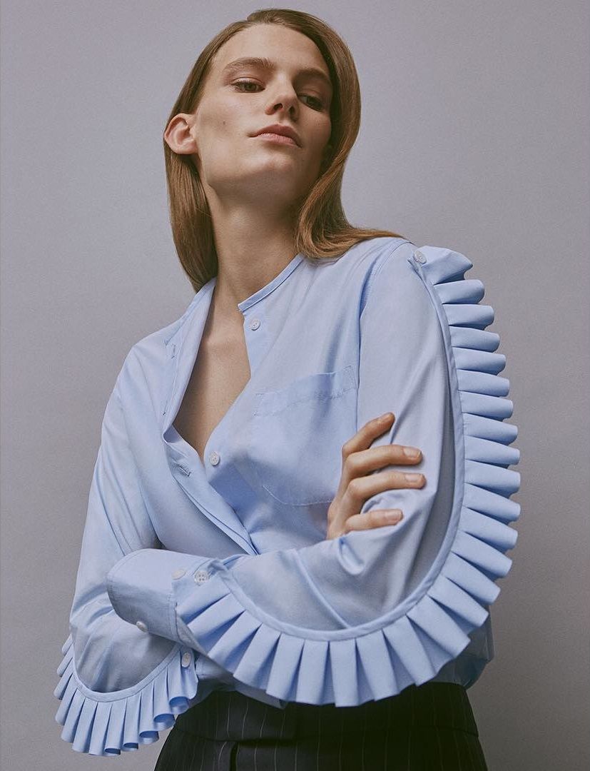 I’m probably a little out of my depth here – but I recall hearing Simon say that natural fibers – especially the lightweight silks – can really only be spot cleaned or air dryed, as the risk of the hand pleating being undone is high. But a wool crepe for example, could likely withstand the process and be pressed back into shape to a degree. I do recall my wool school uniform kilt always being so lovely and sharp when new, but overtime the pleats soften as the fibres relax (and that was dry cleaned). Hope that helps!