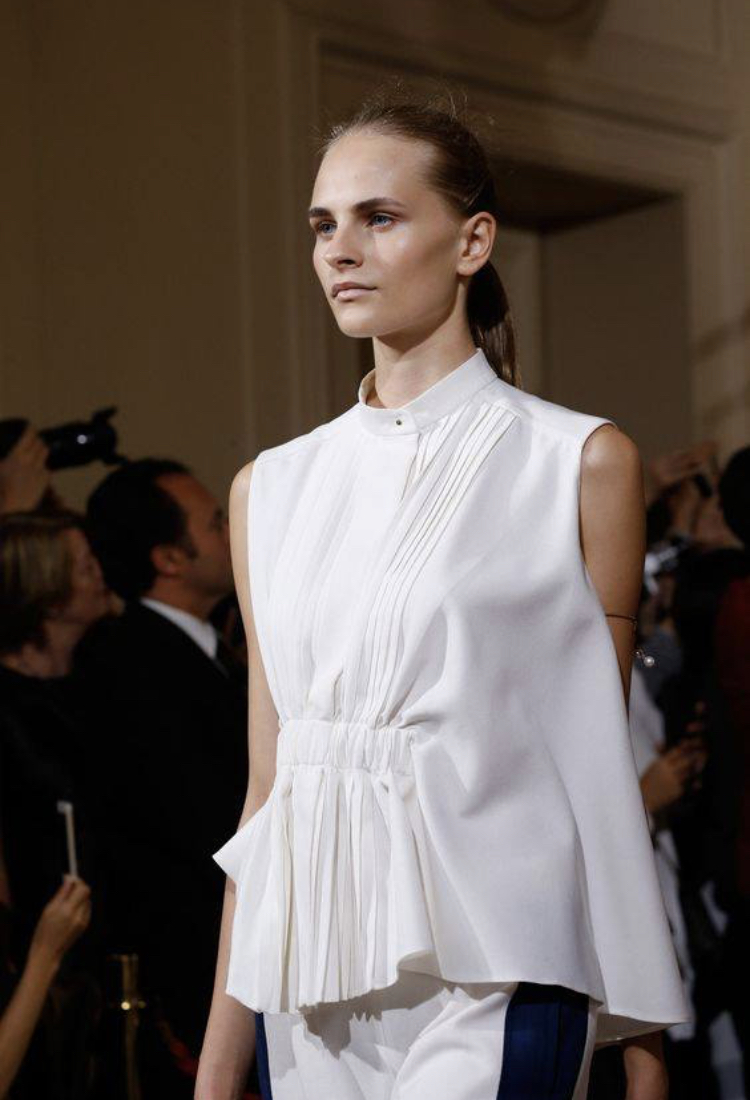 That “unknown” navy pleated dress is Vionnet fall 2014